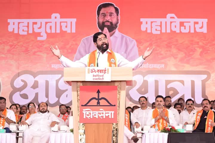 रत्नागिरीत शिवसेनेचा भव्य मेळावा गहाण ठेवलेला धनुष्यबाण आम्ही सोडवला त्यांचा परिवारवाद तर आमचा महाराष्ट्रवाद, उबाठा…